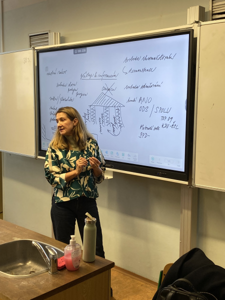 Žáci 9. třídy naší školy měli jedinečnou příležitost setkat se s poslankyní Gabrielou Svárovskou, která mezi ně zavítala na besedu o fungování politiky v České republice. Setkání bylo nejen zajímavé, ale i velmi přínosné, protože žákům přiblížilo témata, o kterých se běžně učí spíše teoreticky. Na úvod paní poslankyně představila politický systém České republiky. Vysvětlila, jak funguje parlament, jak se tvoří zákony a jakou roli hraje vláda či prezident. Žáci se dozvěděli, že Poslanecká sněmovna je klíčovým orgánem, kde se projednávají a schvalují zákony. Beseda však nebyla jen o teorii. Gabriela Svárovská sdílela i své osobní zkušenosti z politického i profesního života. Žáky zaujalo například to, že dříve působila v diplomacii a pracovala také v týmu prezidenta Václava Havla. Velkou část besedy věnovala tématu lidských práv, na které se dlouhodobě specializuje. Vysvětlila, proč jsou lidská práva důležitá pro fungování demokracie a jak souvisejí se svobodou, rovností a důstojností každého člověka.