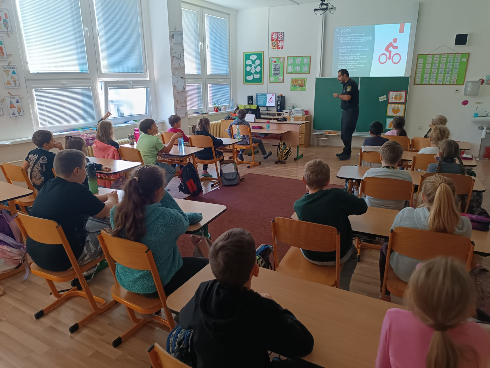 V pátek 24. 10. nás ve třídách 2. B, 3. A a 3. B navštívil vedoucí strážník Městské policie Bc. Martin Griga. S žáky si povídal o tom, jak se bezpečně chovat na ulici a v dopravě. Děti si zopakovaly správné chování chodců, zejména to, jak bezpečně přecházet přes silnici.